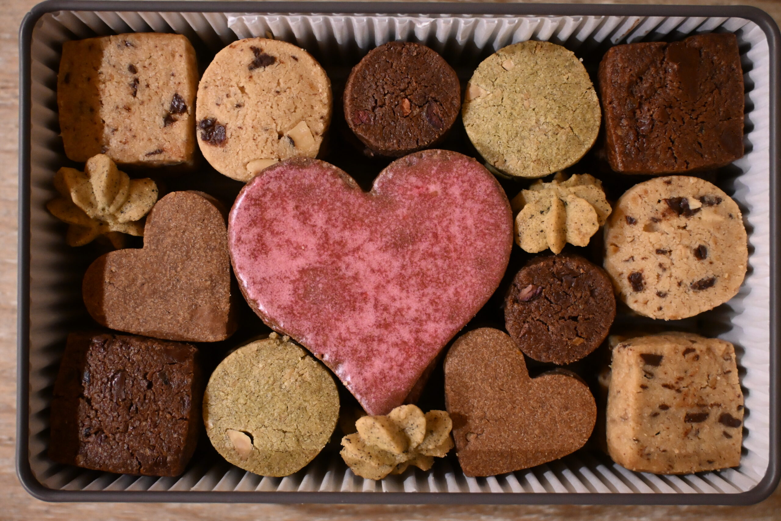 バレンタインシーズン限定のクッキー缶で種8類のクッキー詰め合わせ。